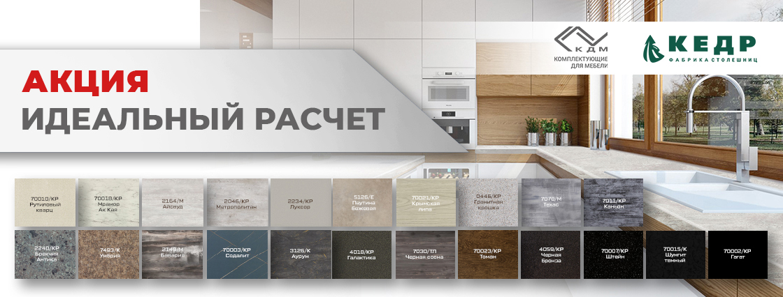 Мы дорожим своей репутацией и предлагаем товары, отвечающие самым высоким техническим и эстетическим требованиям. Каталог компании регулярно пополняется продукцией от новых брендов. Здесь найдется все: от саморезов, уголков и ручек до полноценных систем, сложных механизмов трансформации. На официальном сайте интернет-магазина фурнитуры для мебели КДМ представлено более 20 товарных групп и свыше 25 000 наименований с фото и подробными характеристиками: