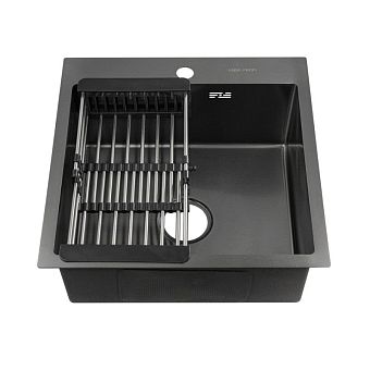 Мойка 50х50 см графит толщина 3,0 х 1/200 мм сифон с переливом + корзина