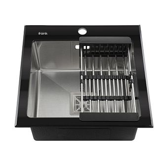 Мойка 50х50 см черное стекло + нержавеющая сталь, толщина стекло 8 мм ,глубина 200 мм + квадратный