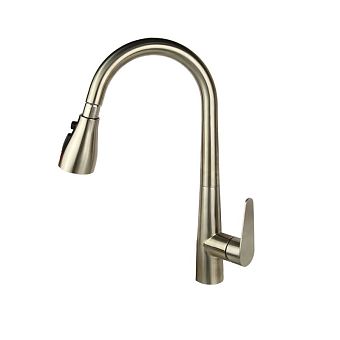 Смеситель д/кухни С-обр. гусак Magnus сатин,с фиксацией на жестком изливе, нерж.сталь304, арт 91112