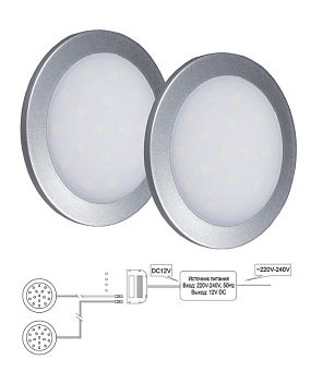 Комплект светильников накл. (LED) 2 х Palis-19 1,3Вт, DC12В, 4000К, серебро, блок пит.