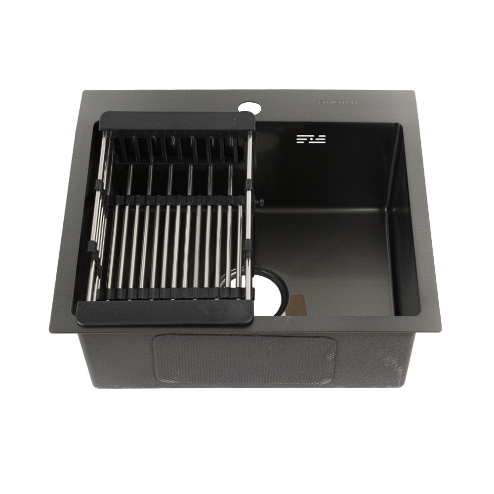 Мойка врезная 50х45 см (графит), толщина основания 3,0 мм, чаша 0,8 мм, глубина 200 мм + большой сифон с переливом. Сифон с углубленной горловиной, мусоросборником и крышкой. В комплект входит универсальная раздвижная корзина. Врезная кухонная мойка произведена из премиальной нержавеющей стали AISI304, обладает повышенной прочностью. Особенность мойки заключается в конструкции ее дна, имеющего небольшой уклон. Благодаря такой особенности, вода быстрее уходит в слив, не застаивается. Скругленные внутренние углы облегчают уход за мойкой, препятствуют скоплению частичек грязи. Тихой в использовании, мойку делает шумоизолирующее покрытие и накладки с обратной стороны мойки.