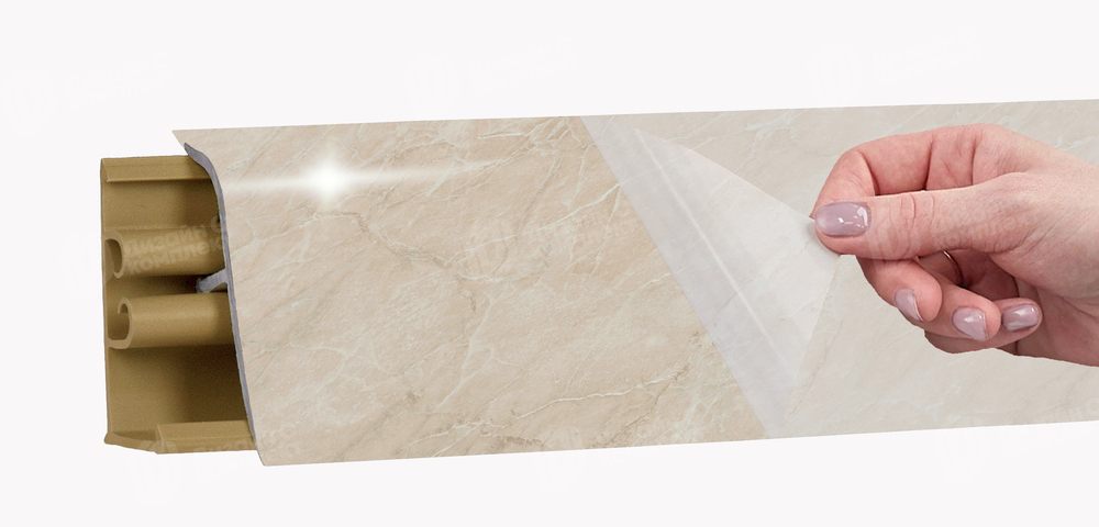 Декор на поверхности плинтуса для столешниц LB 38 покрывает и мягкие края, поэтому они становятся невидимыми, что повышает эстетику отделки.