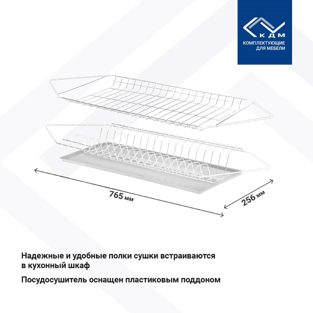 Надежные и удобные полки сушки встраиваются в кухонный шкаф. В комплекте пластиковый поддон.