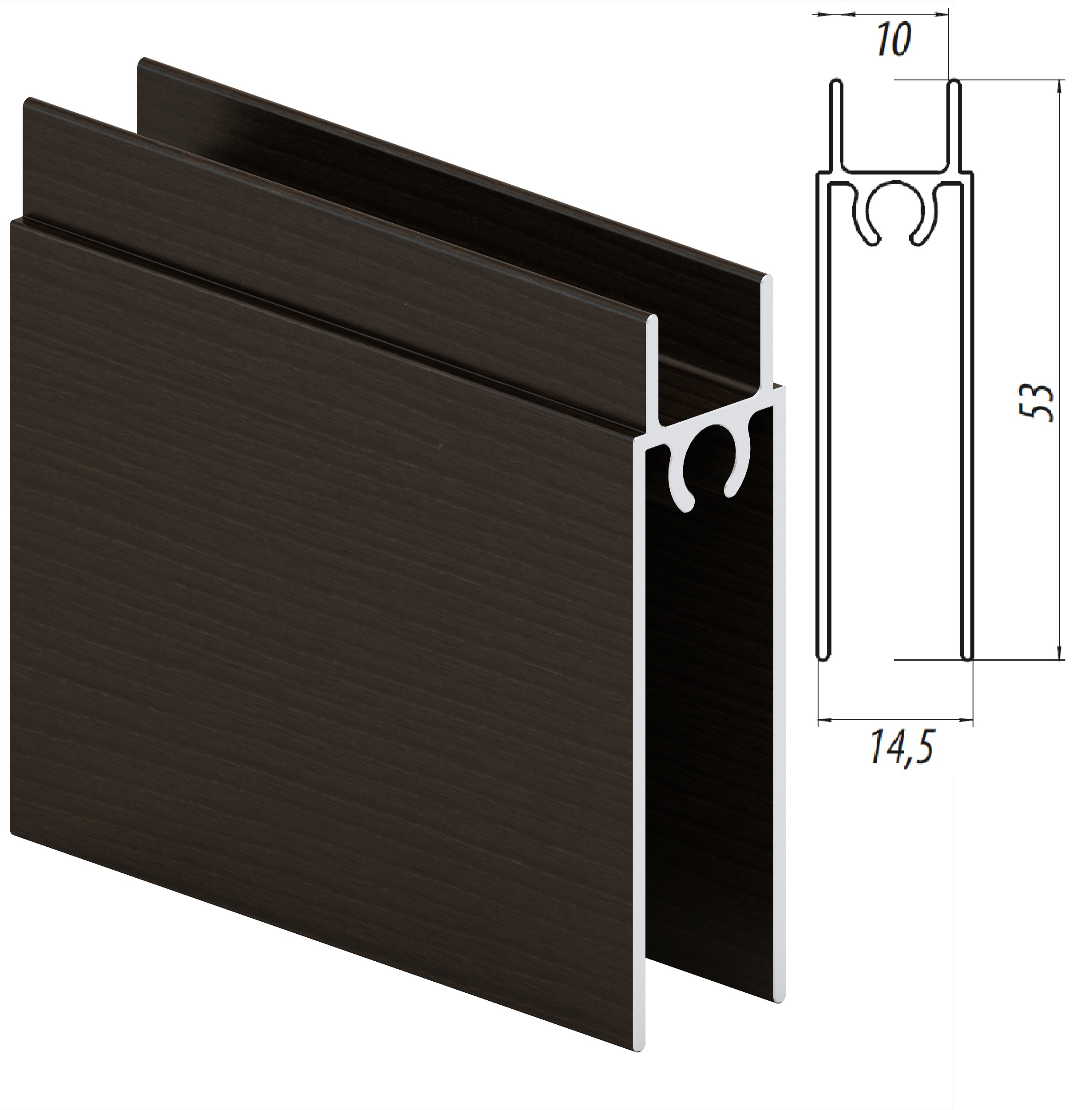Горизонтальный нижний профиль монтируется на торец нижнего среза двери раздвижной системы дверей для шкафа-купе. Эта деталь также придает дверному полотну эстетичный вид и служит в качестве декоративной планки.