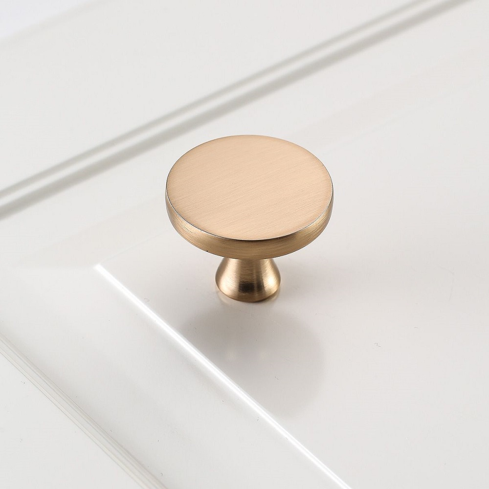 Ручка-кнопка GTV DUNE, выполненная в цвете позолоченной латуни, является изысканным элементом мебели. Ее уникальная форма кнопки с плоской шляпкой добавляет элегантности и стиля, делая её идеальным акцентом для шкафов, комодов и ящиков.