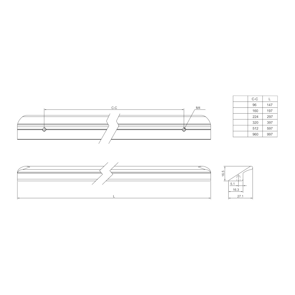 Ручка-профильная EVA LINE 960мм (L=997мм) шампань