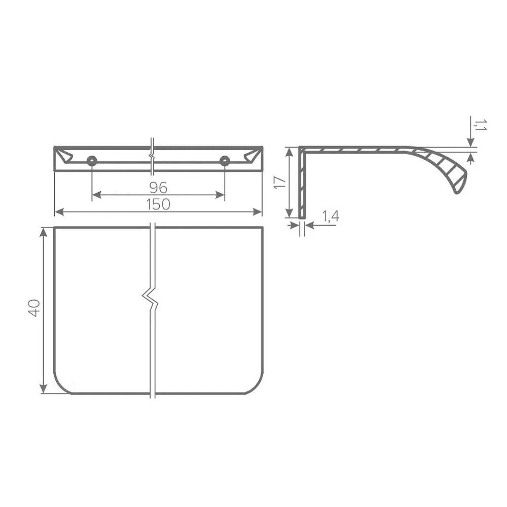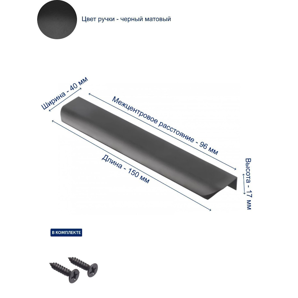 • Межцентровое расстояние — 96 мм, длина ручки — 150 мм, что делает её удобной и эргономичной для использования.