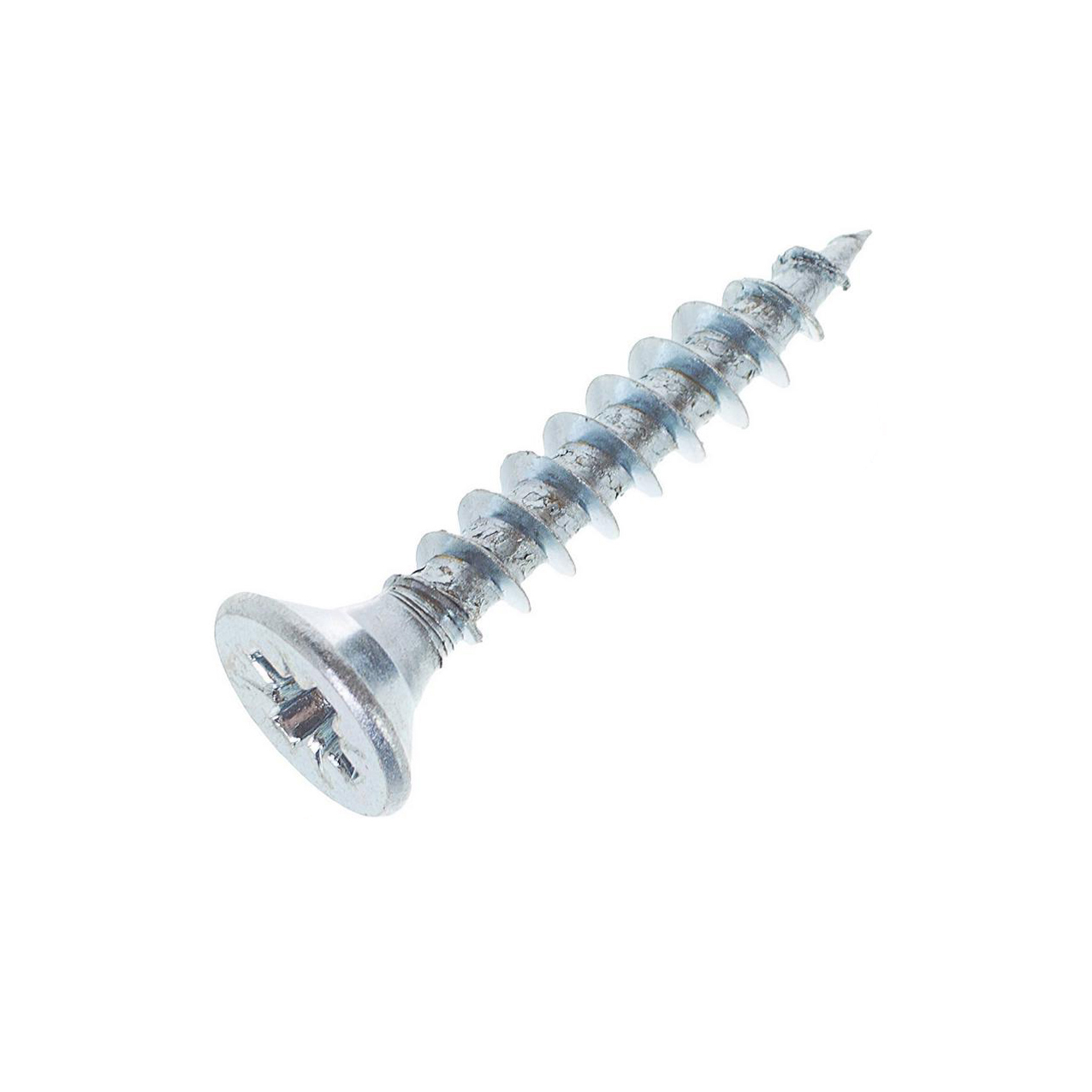 Шуруп самонарезающий с головкой потайной формы, с резьбой и острым концом.
