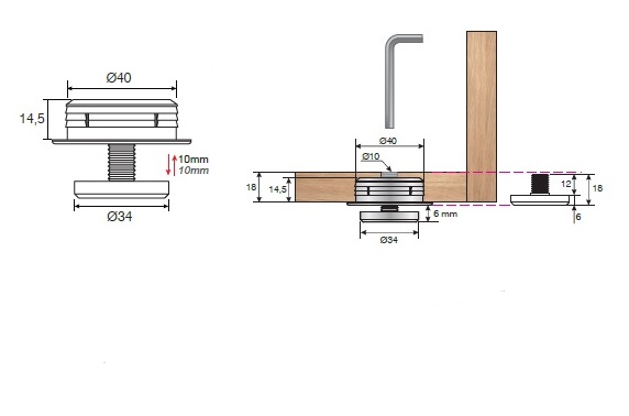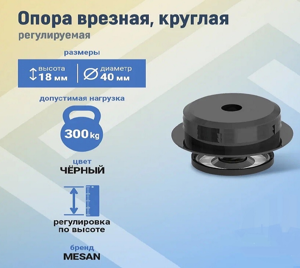 Врезная опора регулируемая черная 18мм (Mesan)